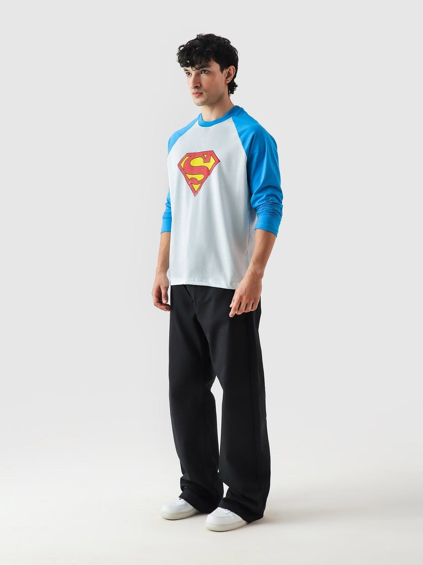 Embrace casual comfort and iconic nostalgia with this oversized Superman Drop Shirt, a must-have piece that flawlessly blends a vintage athletic aesthetic with today’s relaxed streetwear trends. This raglan style tee is cut for a modern loose, drop-shoulder fit, providing a comfortable and effortless drape that is essential for a contemporary silhouette, ensuring maximum ease of movement and a highly fashionable look. It features the classic three-quarter length sleeves in a vibrant blue that contrasts beautifully with the light main body, immediately drawing attention to the instantly recognizable, high-impact Superman crest graphic displayed proudly on the chest. Crafted from soft, breathable cotton, this tee is an ideal statement piece for everyday wear, effortlessly complementing oversized jeans or casual joggers, and offering fans a subtle yet stylish way to show off their appreciation for the legendary Man of Steel.
